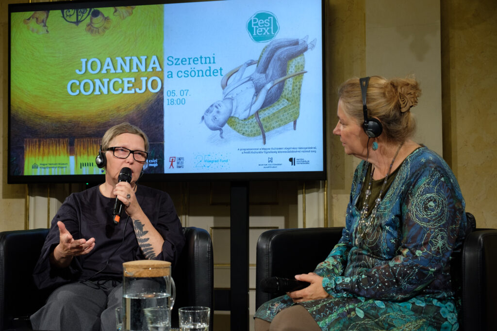 Joanna Concejo (balra) és Révész Emese (jobbra) beszélget a PesTexten, Fotó: Tóth Tibor